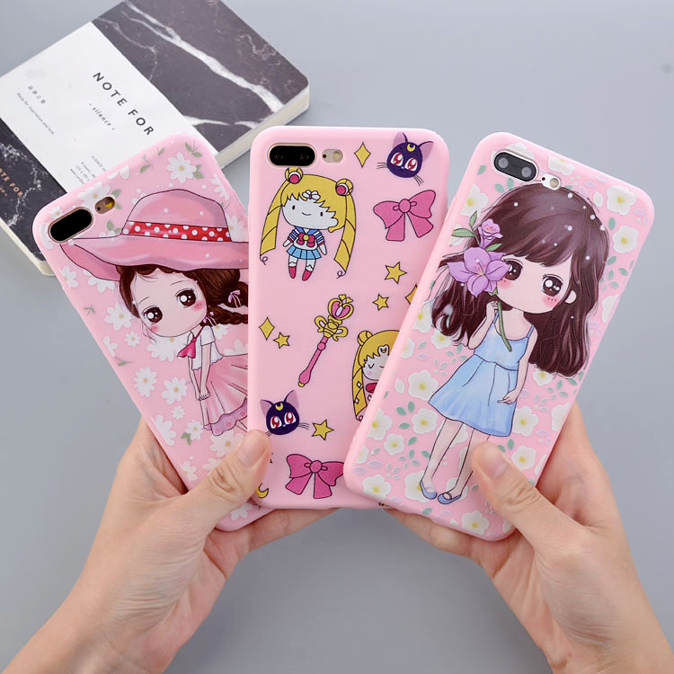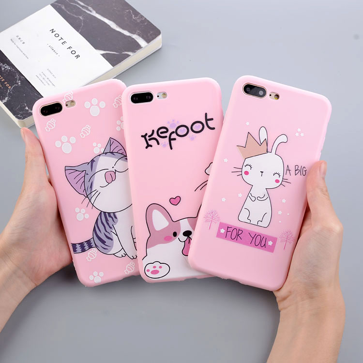 粉色可愛彩繪手機殼 蘋果6S保護套iphone7Plus外殼女款軟硅膠套新