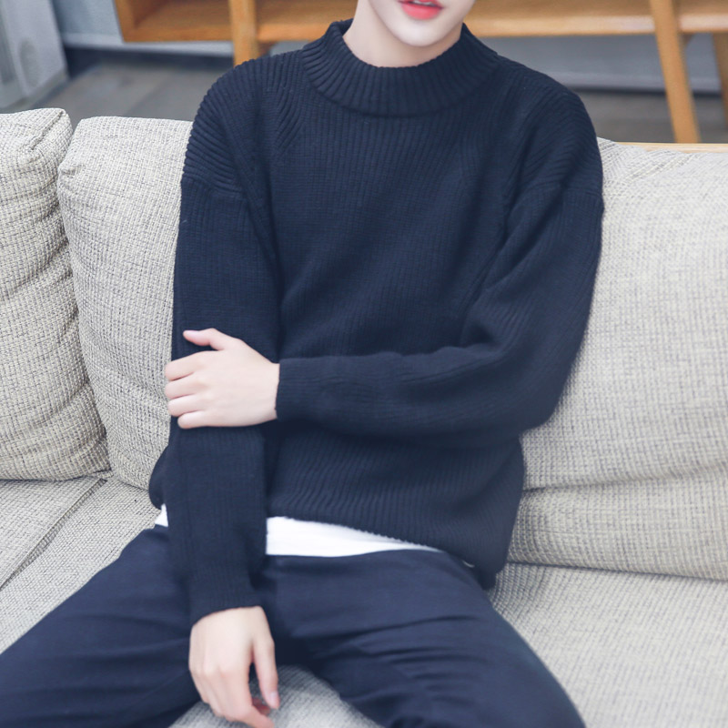 / 男裝港系純色休閑百搭冬季男士圓領針織衫韓版毛衣