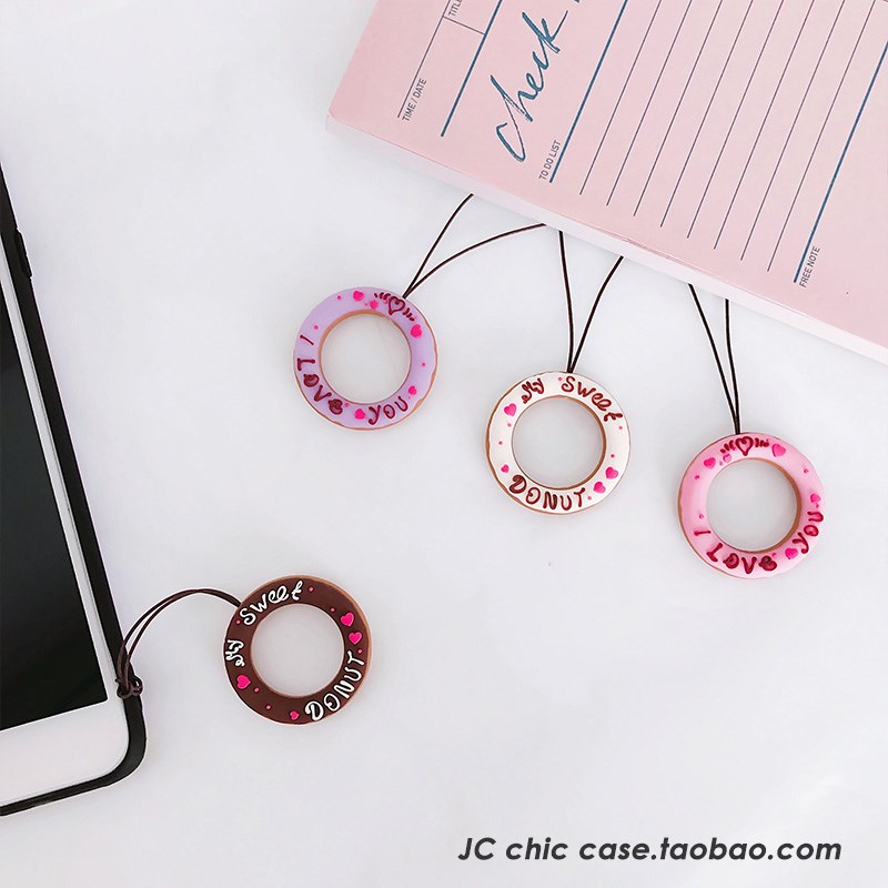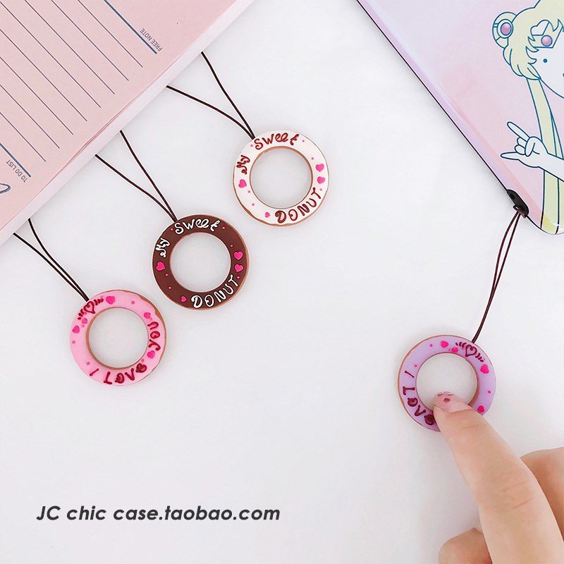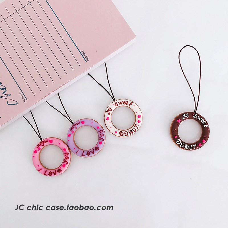 / 甜甜圈小手繩手機殼掛飾硅膠圓環指環扣鑰匙扣飾品掛繩通用韓國女