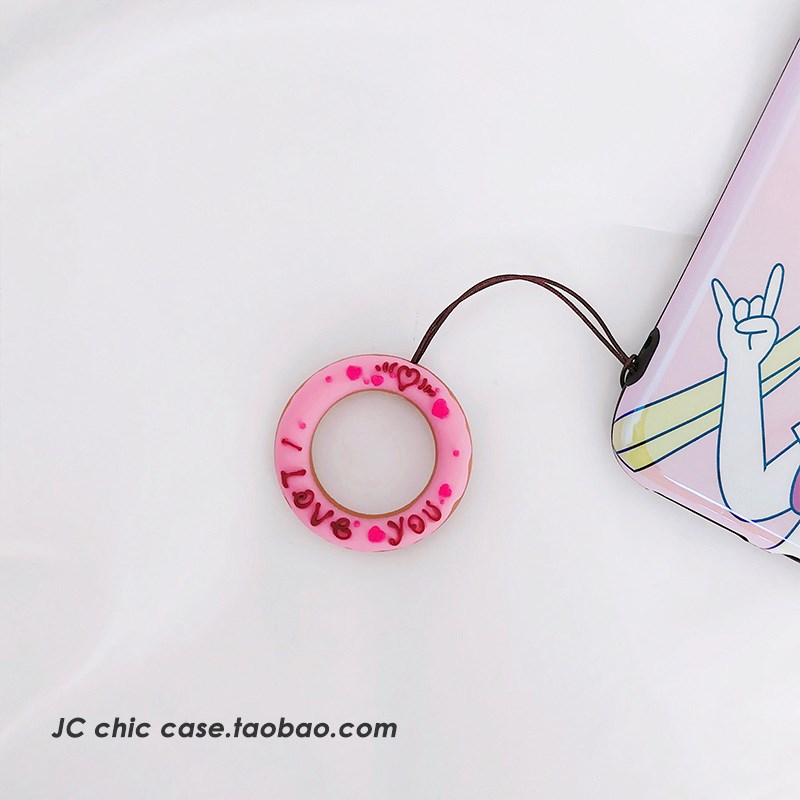 甜甜圈小手繩手機殼掛飾硅膠圓環指環扣鑰匙扣飾品掛繩通用韓國女