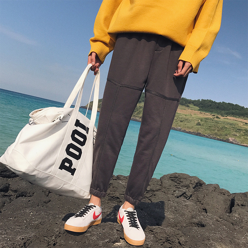 / 文藝男女店秋季男士寬松休閑褲學生褲子衛褲韓版潮流古著vintage