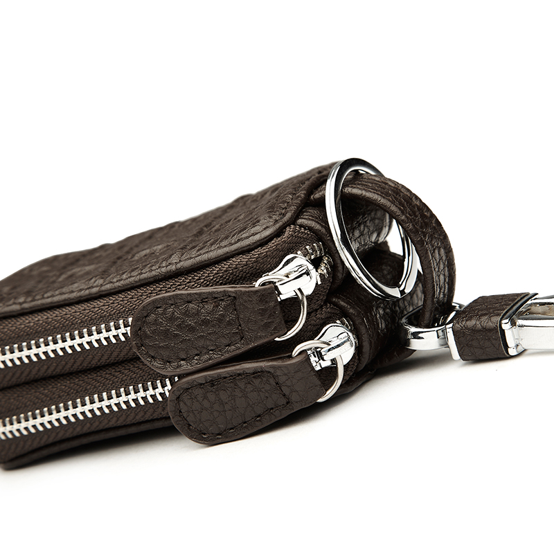 雙拉鏈鑰匙包男軟皮男士鑰匙包女士腰掛大容量汽車鎖匙包零錢包