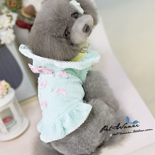蝴蝶結手工釘珠冬裙(外層小毛圈,里布純棉單面)面料很做工都很費時間和人力的哈哈~~~只有PETCO這種性價比比較高的品牌肯花這點時間和功夫哈哈!!小丸子很喜歡這個牌子~~價格實惠面料好!!版型也NICE~哈哈這款裙子很有公主FEEL~~哈哈小清新的綠色小丸子尤其喜歡呢哈哈!!!粉色很甜蜜也很贊哦!哈~冬天穿著又保暖又可愛~