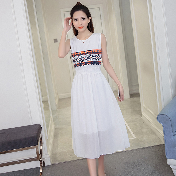 / 夏季女裝新款時尚印花無袖背心裙顯瘦大碼沙灘長裙子雪紡連衣裙夏