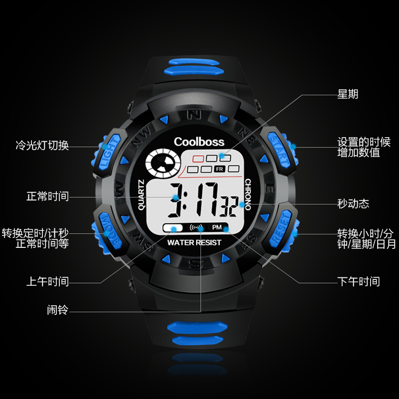 青少年手表男款潮流時尚兒童男孩小學生初中生戶外運動防水電子男