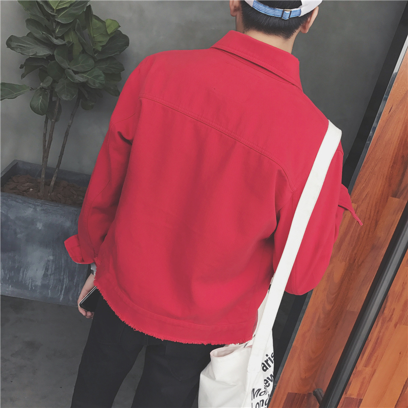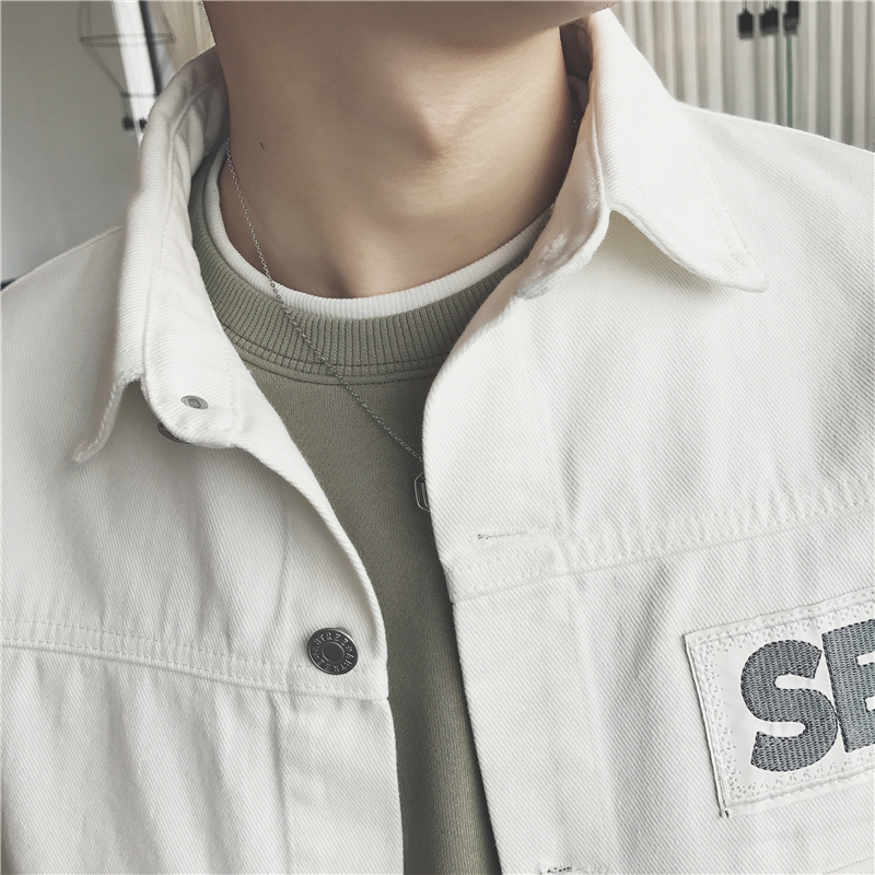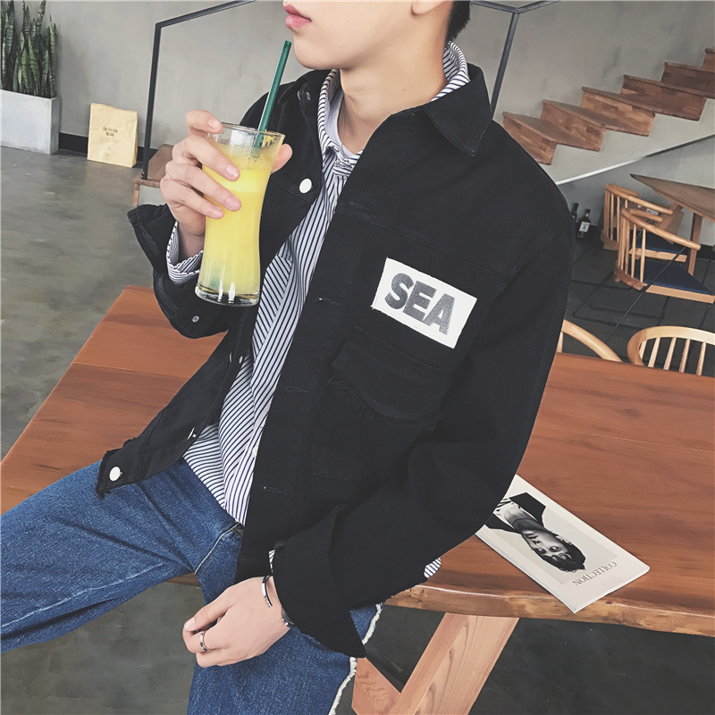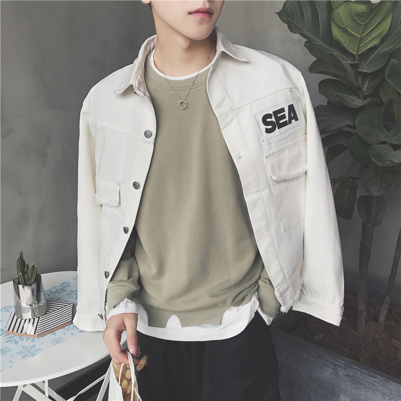 / 男裝韓版貓須字母水洗做舊復古男士修身貼布外套潮
