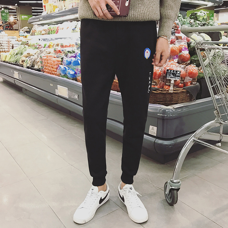 / 新款男裝叮當貓字母刺繡加絨加厚男士休閑褲衛褲