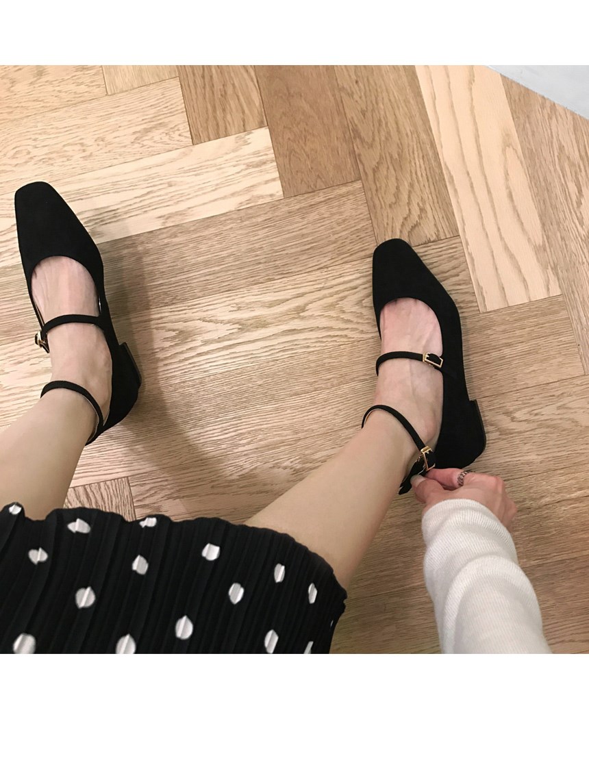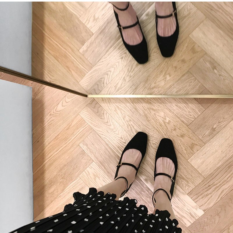 / 社會女鞋子2018春秋季新款平底鞋韓版百搭黑色淺口一字扣絨面單鞋