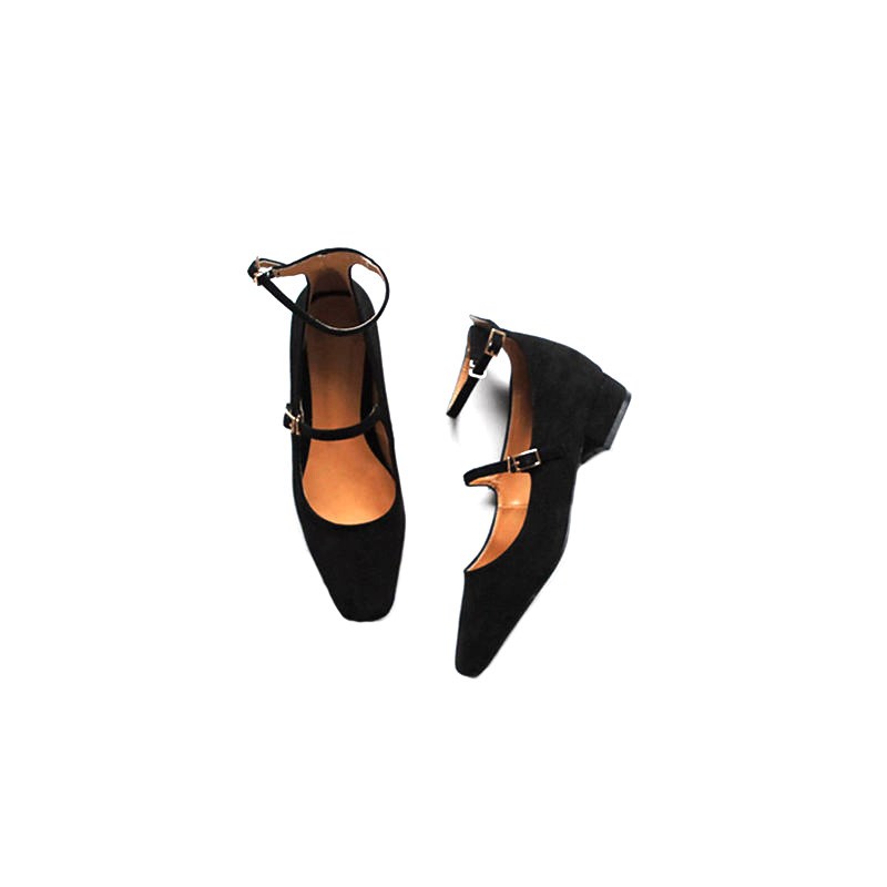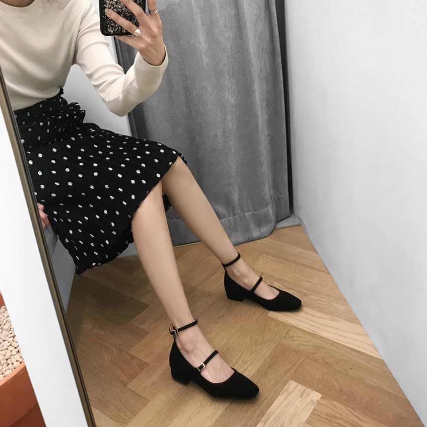 社會女鞋子2018春秋季新款平底鞋韓版百搭黑色淺口一字扣絨面單鞋