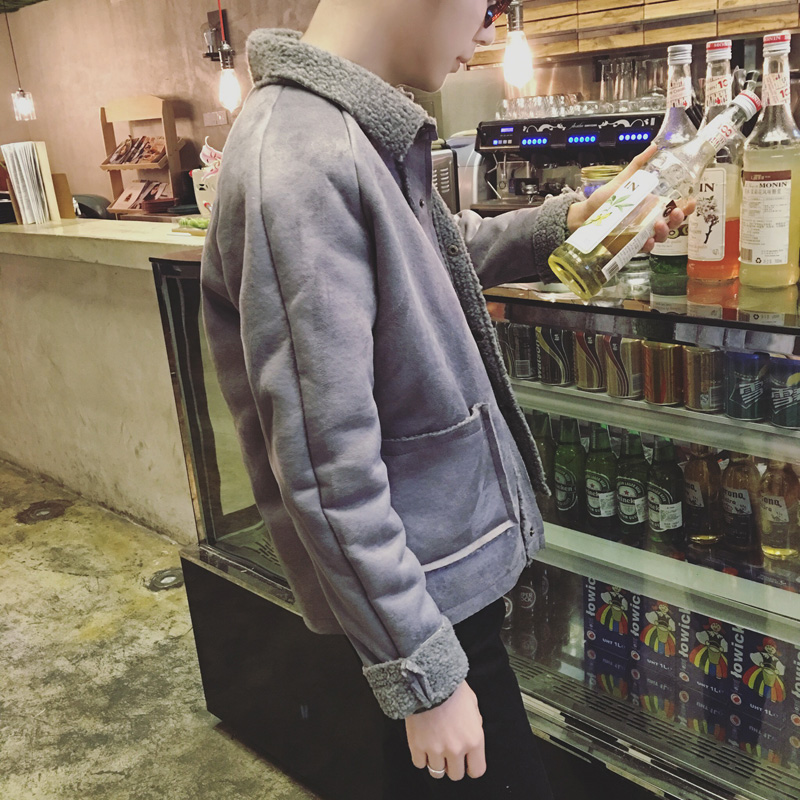 / 新款男裝韓版修身羊羔毛翻領男士保暖短款棉衣外套