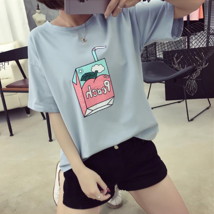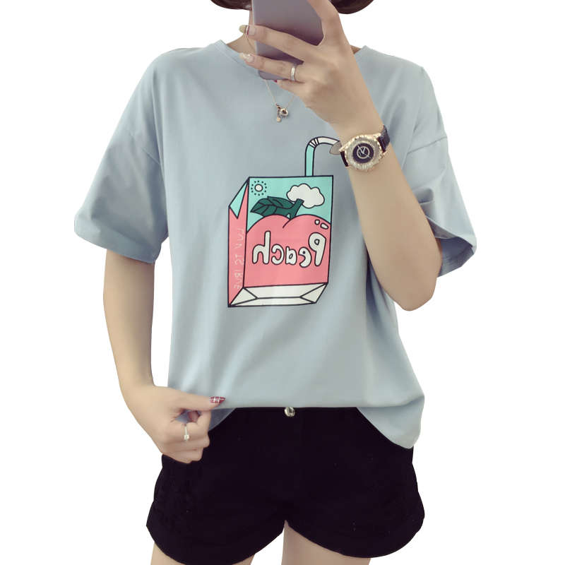 / 新款韓版學生搞怪盒子印花短袖t恤女百搭夏季圓領打底衫女裝大碼