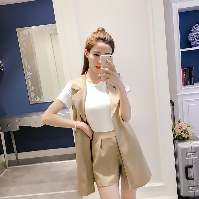 西裝馬甲+高腰短褲的套裝,