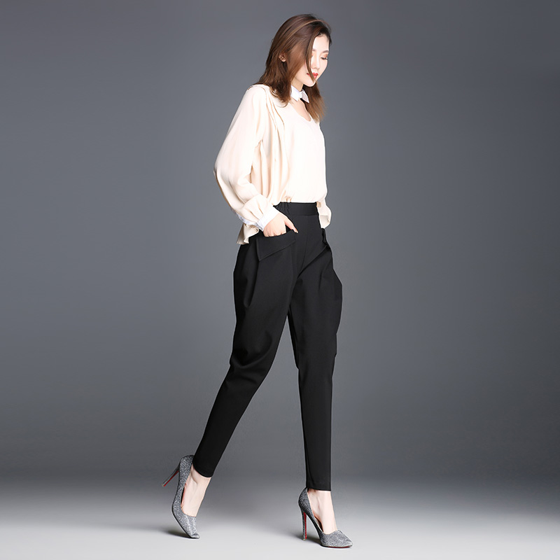 / 黑色哈倫褲女春秋長褲子寬松百搭韓版高腰顯瘦夏季休閑OL小腳褲潮