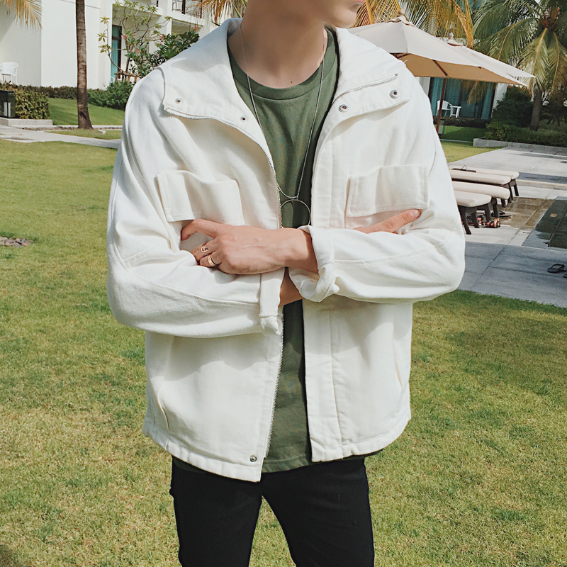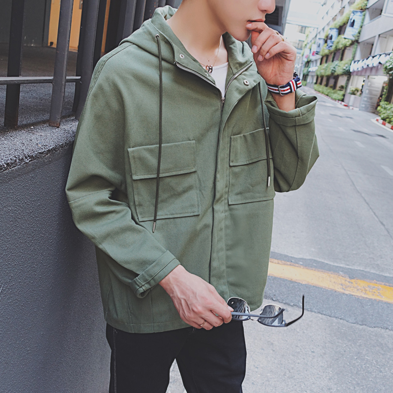 / 男裝韓版字母貼布小清新春裝外套連帽開衫男士夾克