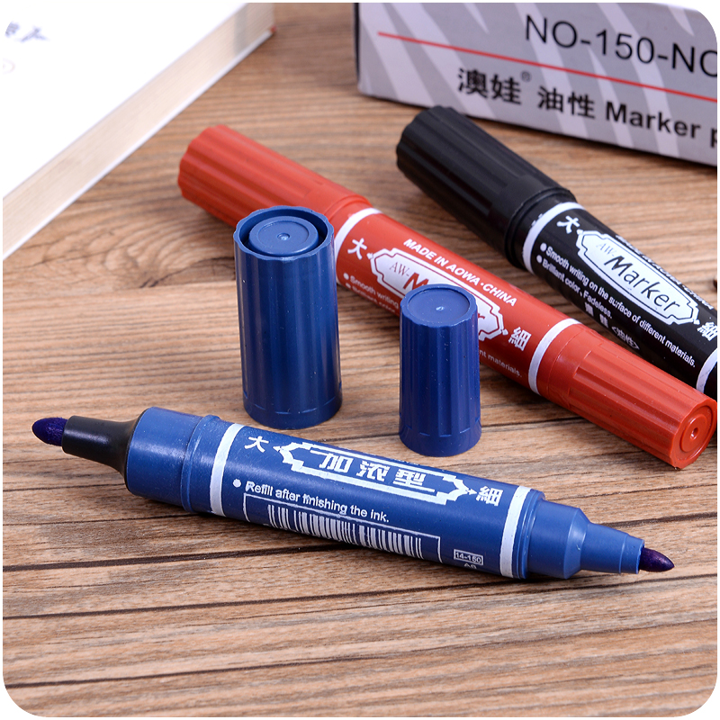 / 油性大頭筆不掉色雙頭粗細兩用快遞物流記號筆黑紅藍色白板寫字筆