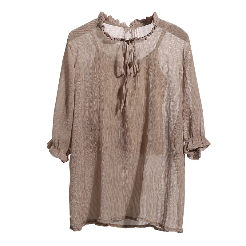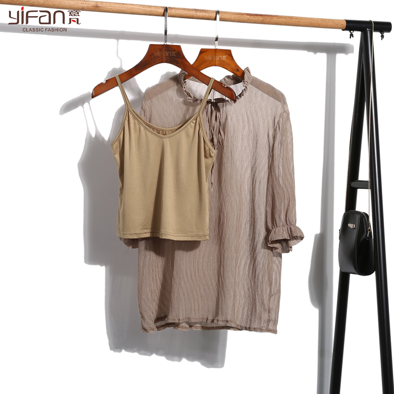 / 雪紡衫夏裝新款韓版寬松顯瘦喇叭袖襯衫七分袖短袖上衣兩件套