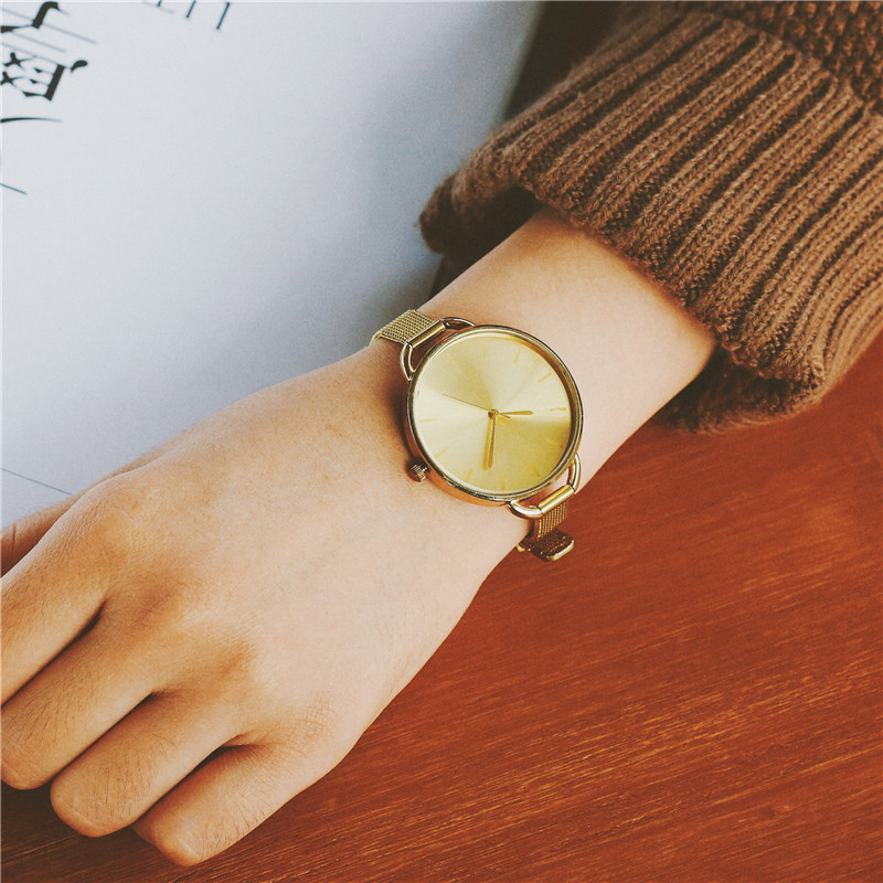 手表女學生韓版簡約潮流氣質大盤鋼絲細帶創意個性經典復古小腕表