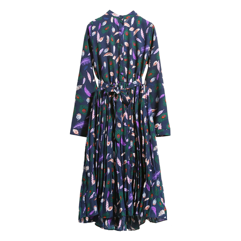 春裝韓版新款女裝顯瘦打底連衣裙雪紡百褶裙碎花長袖雪紡裙女