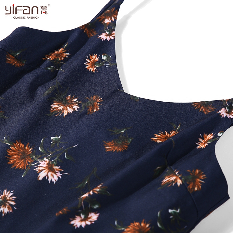 / 春夏新款韓版中長款時尚V領吊帶裙氣質碎花雪紡魚尾裙連衣裙