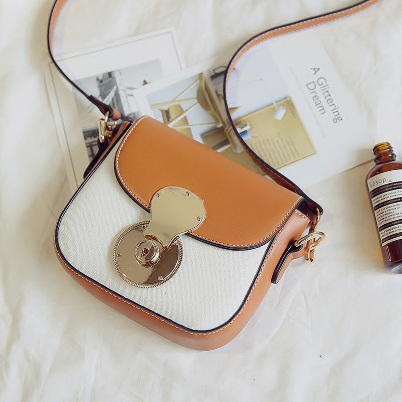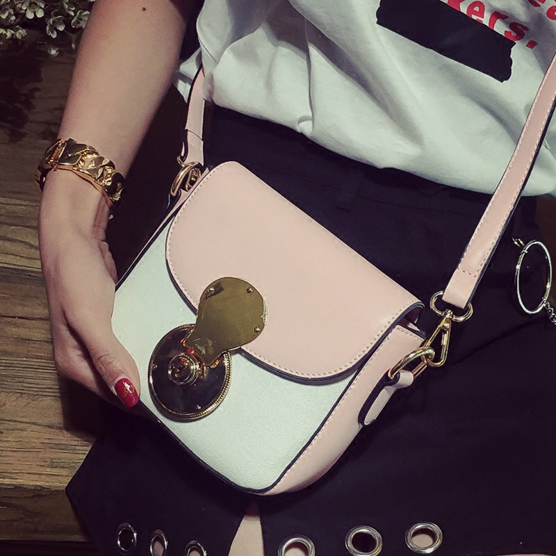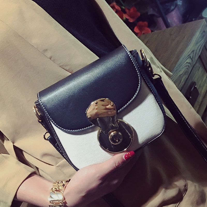 / 包包女新款潮個性鎖扣小方包韓版百搭斜挎包撞色單肩女包小包