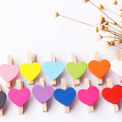 韓國創意木質木頭卡通可愛愛心彩色相片照片夾留言夾便條夾小夾子