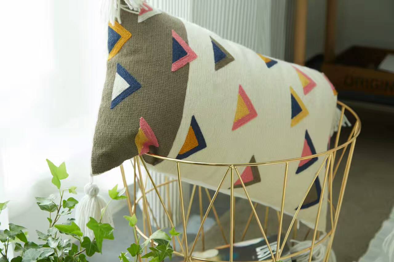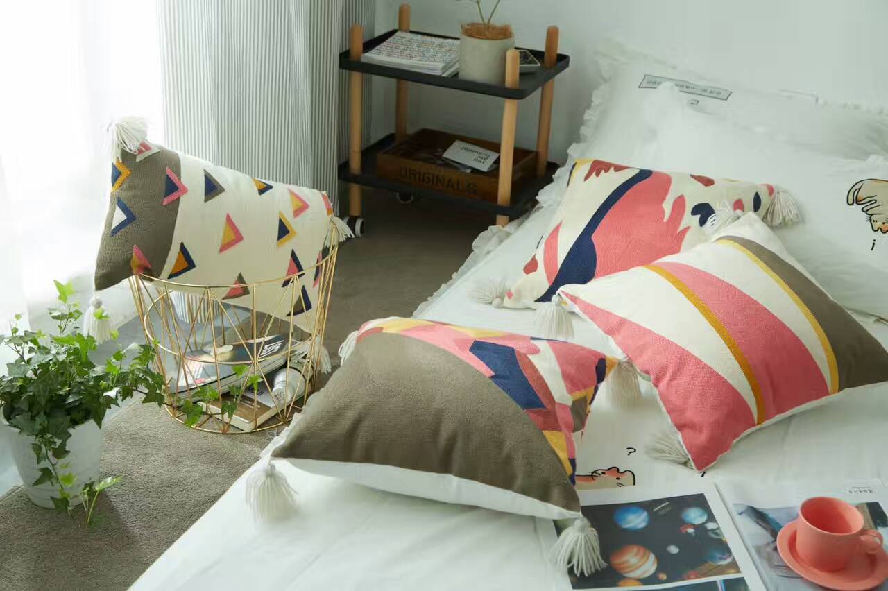 全棉小流蘇滿繡抱枕 純棉方形繡花靠枕可愛汽車辦公室靠背含芯