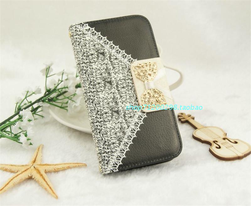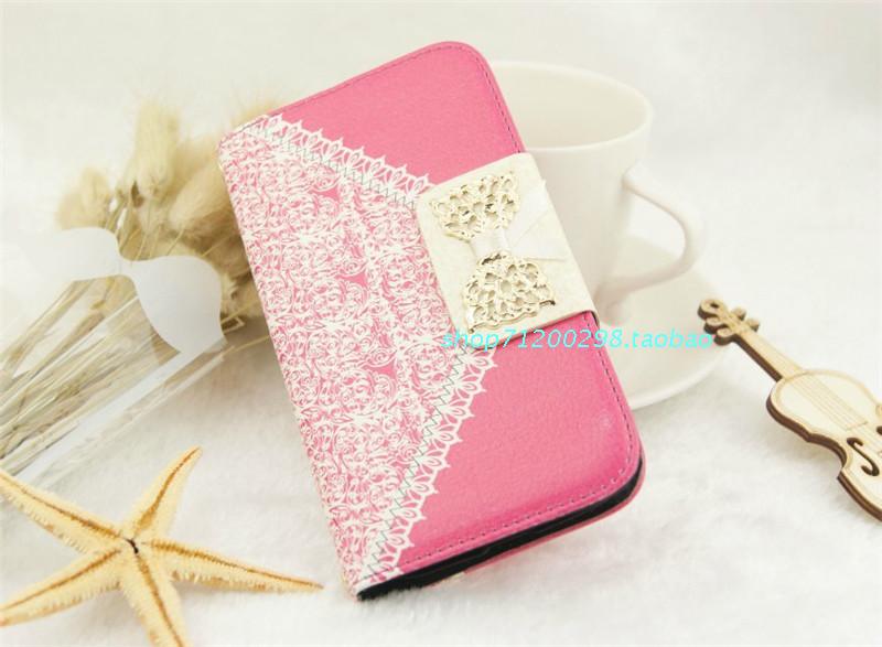 左右開翻 插卡錢包款 蕾絲圖案蝴蝶結 保護套外殼包郵
