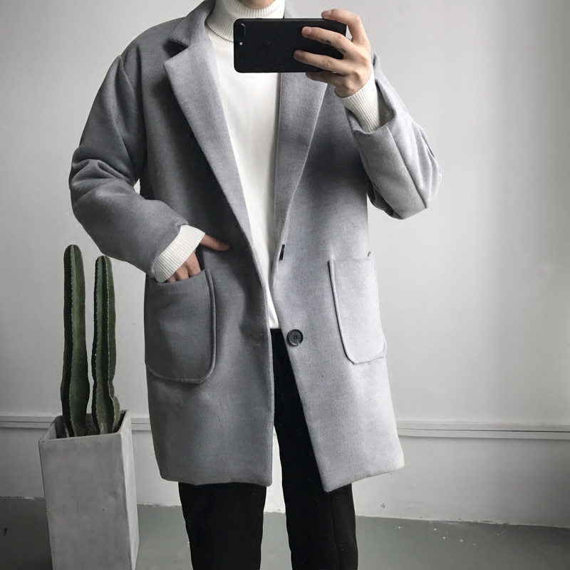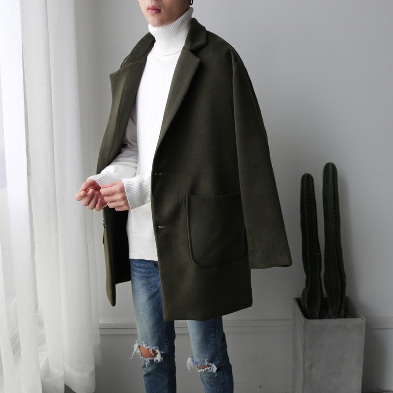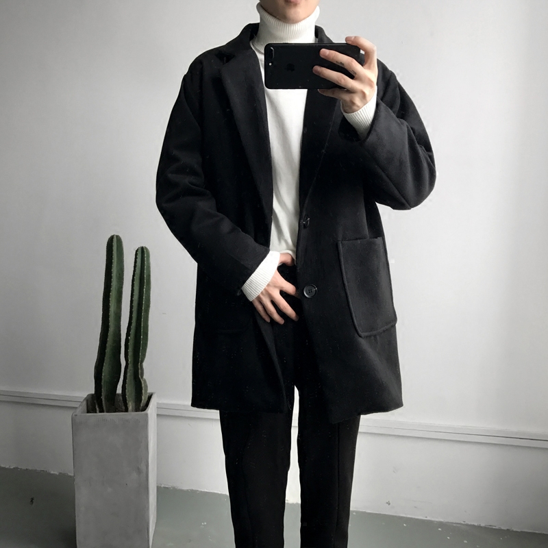 純色潮男寬松落肩中長款風衣韓版雙面尼加厚毛呢大衣