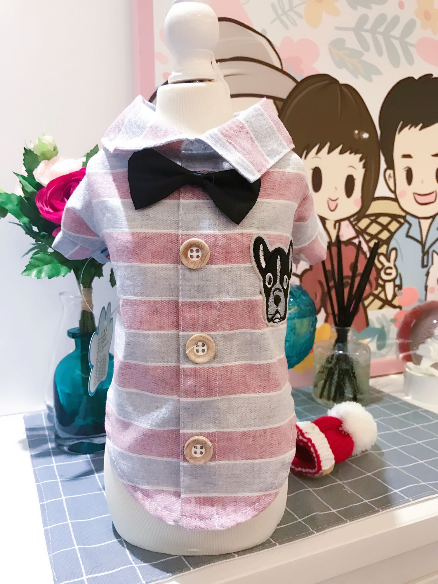 斗牛頭頭哈哈哈哈!!萌的不要不要~~~~~哈哈哈這個設計可愛的不要不要好嗎~~!你會喜歡噠~~~萌萌噠~~帥帥噠~~~可愛到爆哦!!版型非常好!!~上身很好看呢~下面是丸子家小模特馬爾濟斯小團團~恩恩真的很好看很顯身材哈哈哈~~