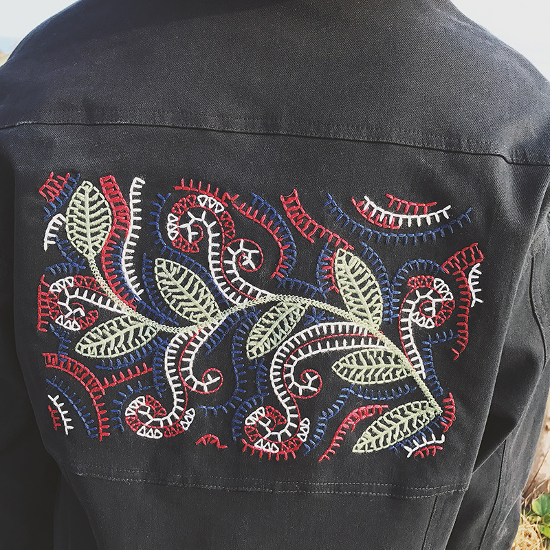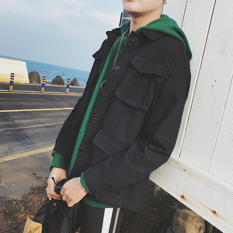 / 男裝刺繡植物樹葉韓版春季男士翻領寬松夾克外套