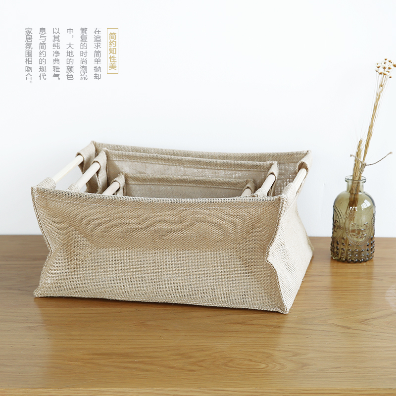 日式簡約收納筐黃麻木提手收納箱ZAKKA雜貨雜物儲物收納籃