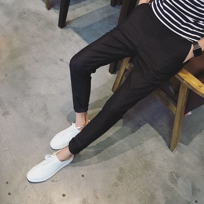 秋上新純色簡約小直腳修身休閑褲韓版潮男港風長褲