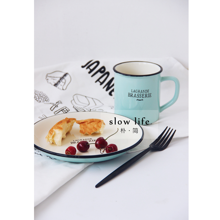 樸簡 外貿出口字母陶瓷馬克杯盤碟 西餐餐具 牛奶杯咖啡杯點心盤