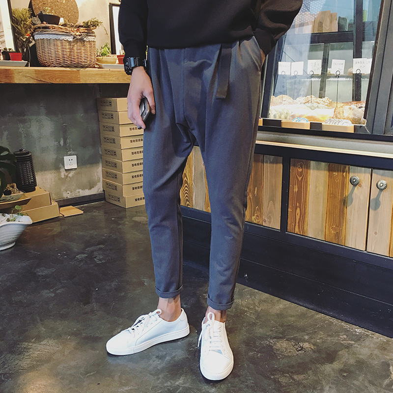 / 秋季新品韓版掛件錐形修身小腳男士休閑褲哈倫褲潮