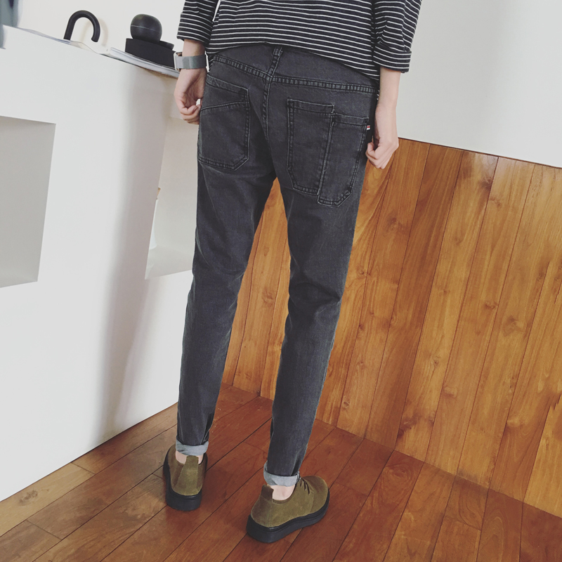 新款男裝口袋刺繡潮流韓版修身男士牛仔褲小腳褲