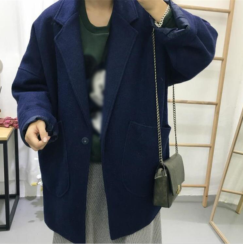 / 秋冬韓版潮新款翻領寬松呢子大衣中長款上衣長袖毛呢外套女裝