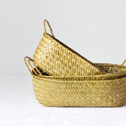 樸簡 日式手工海草編筐雙耳收納籃 桌面雜物籃整理儲物筐子
