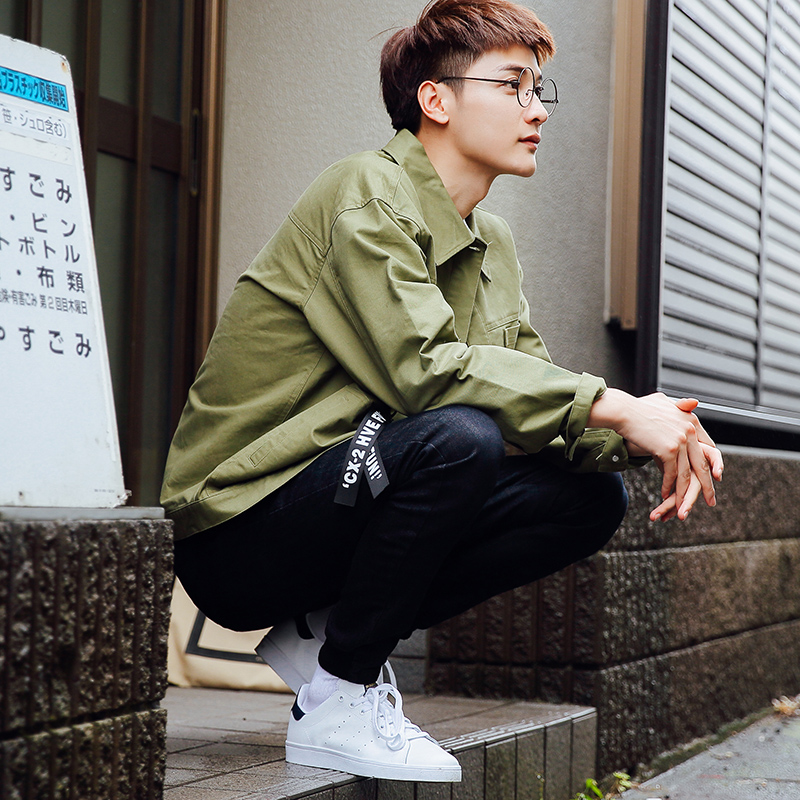 / M春裝新品拉鏈裝飾潮男工裝寬松夾克韓版港風外套男