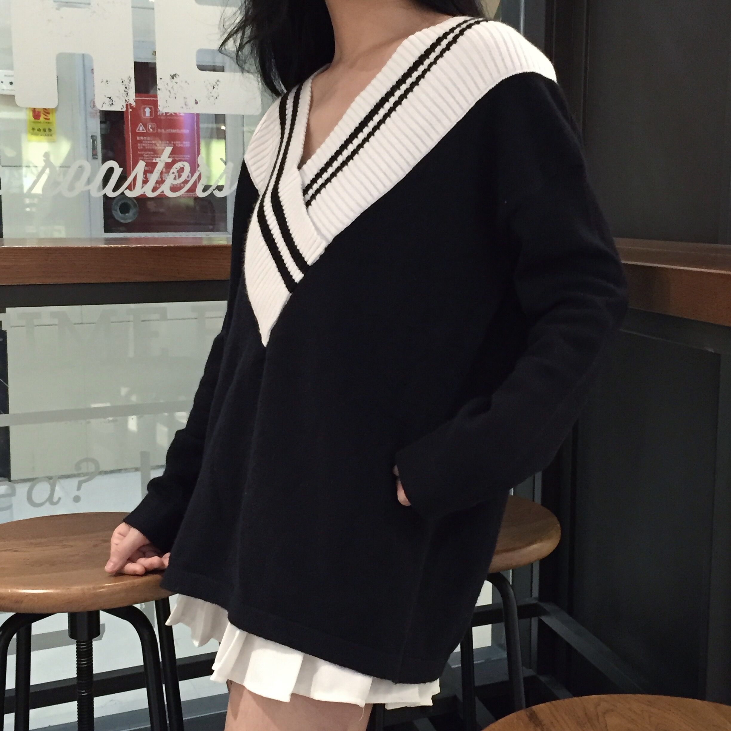 實在是經典到無法形容啦 純色中用少許的條紋裝飾V領更有味道