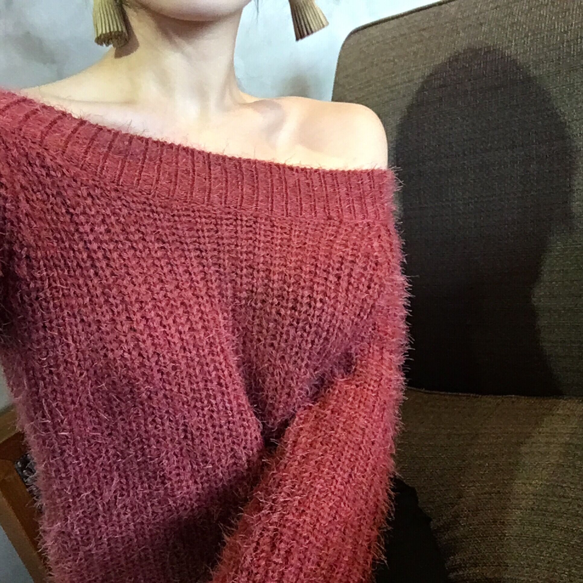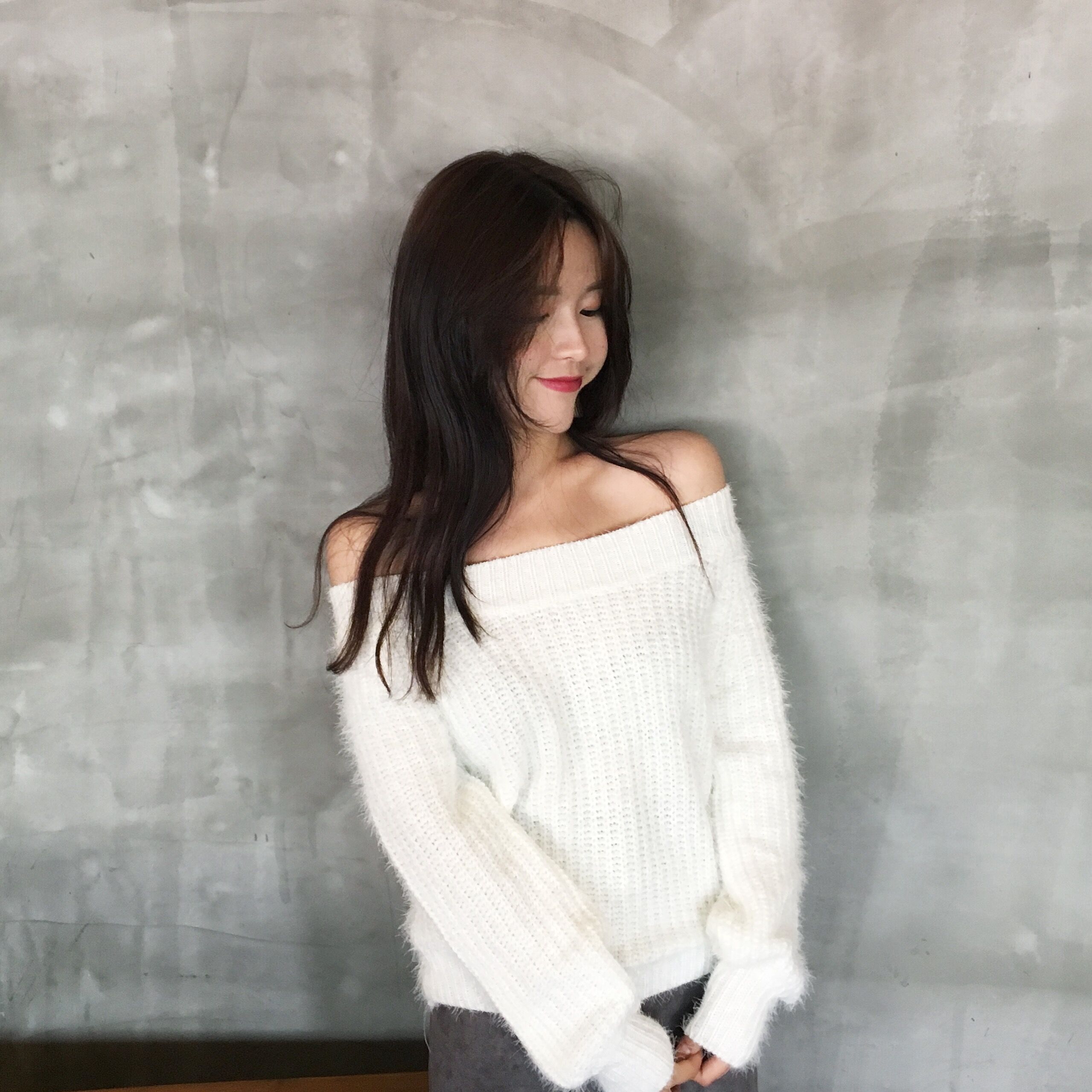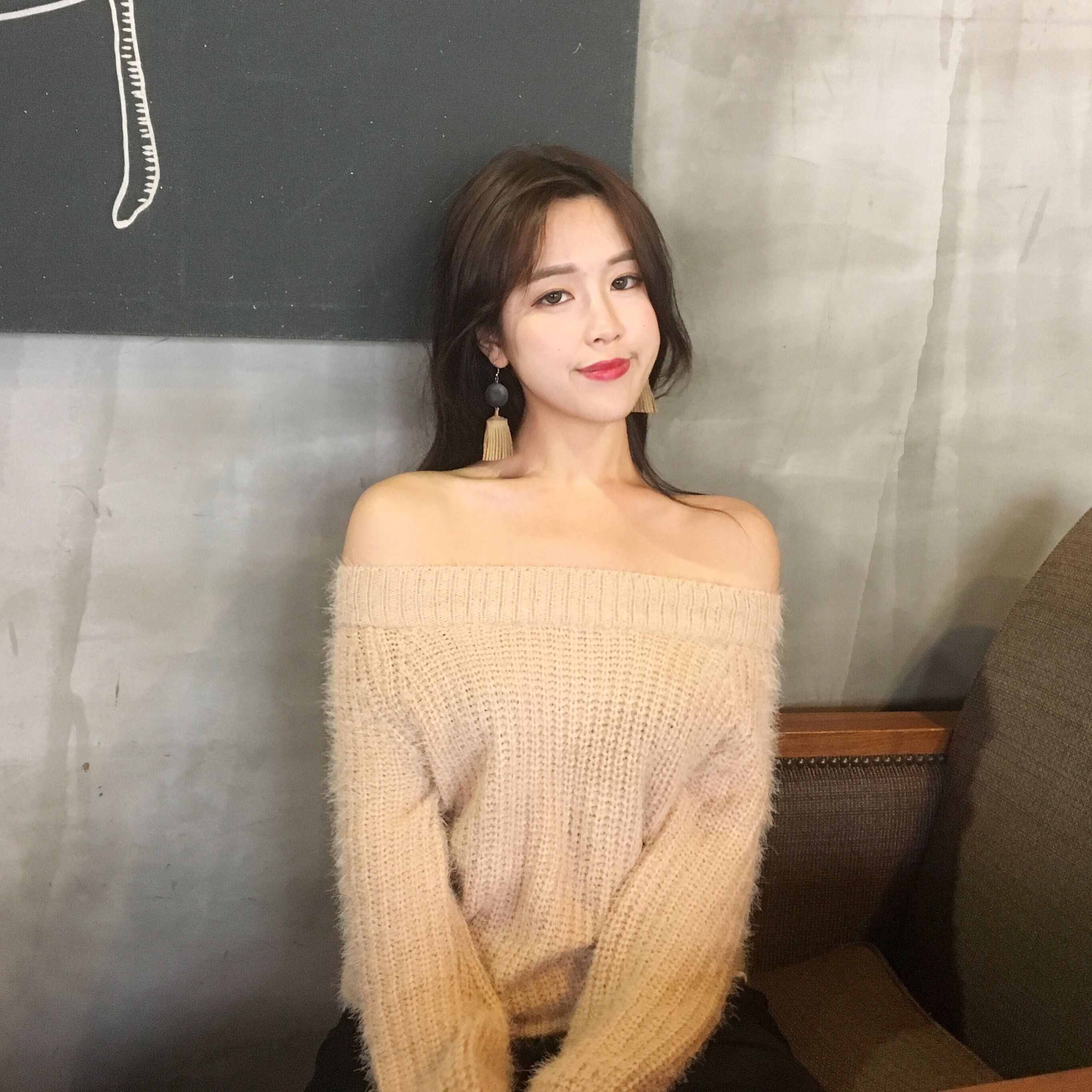 / 韓國chic秋冬款馬海毛氣質一字肩兩穿套頭短款打底毛線毛衣女