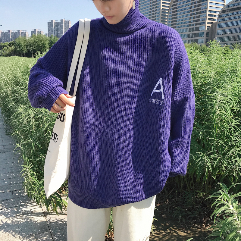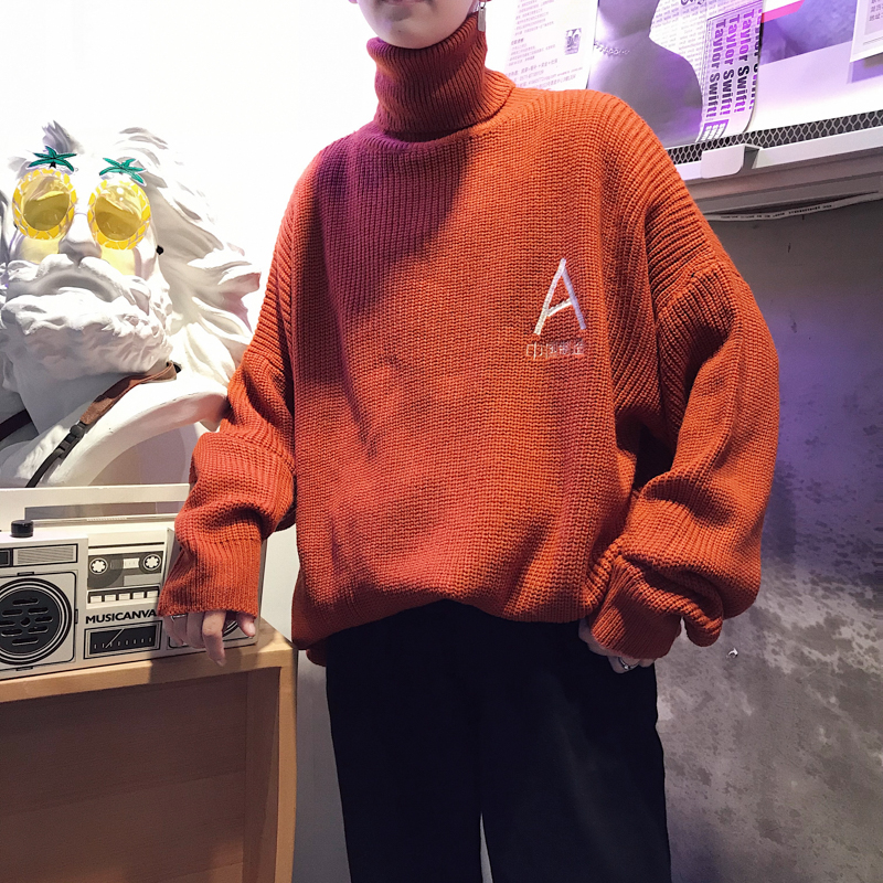 文藝男女店網紅毛衣男士秋季韓版高領針織衫潮流復古男裝衣服男