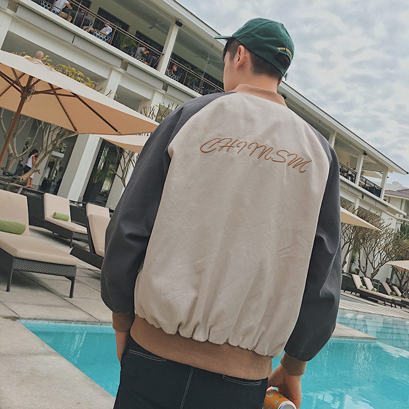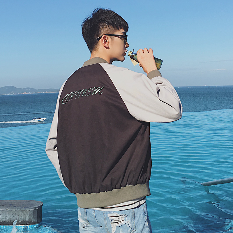 / 男裝韓版字母刺繡撞色插肩袖棒球領夾克薄款外套男