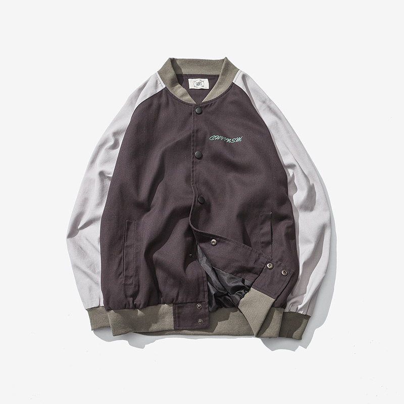 男裝韓版字母刺繡撞色插肩袖棒球領夾克薄款外套男