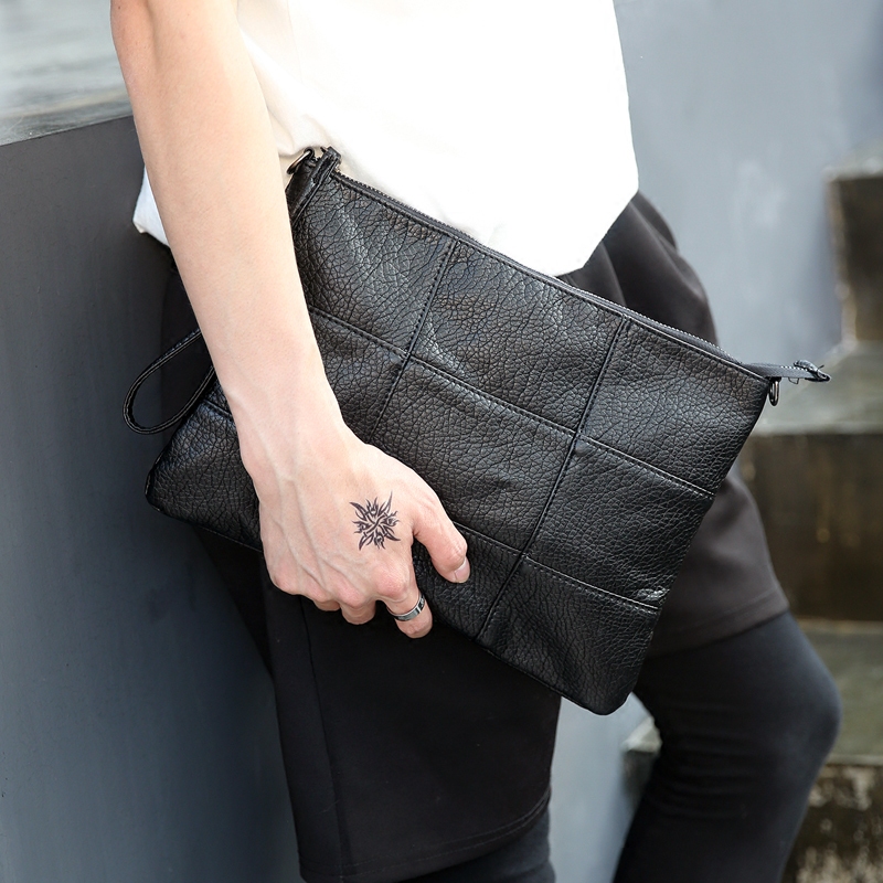 / 軟皮潮流時尚手拿包手抓男女包韓版手拿包單肩斜挎包信封包IPAD包