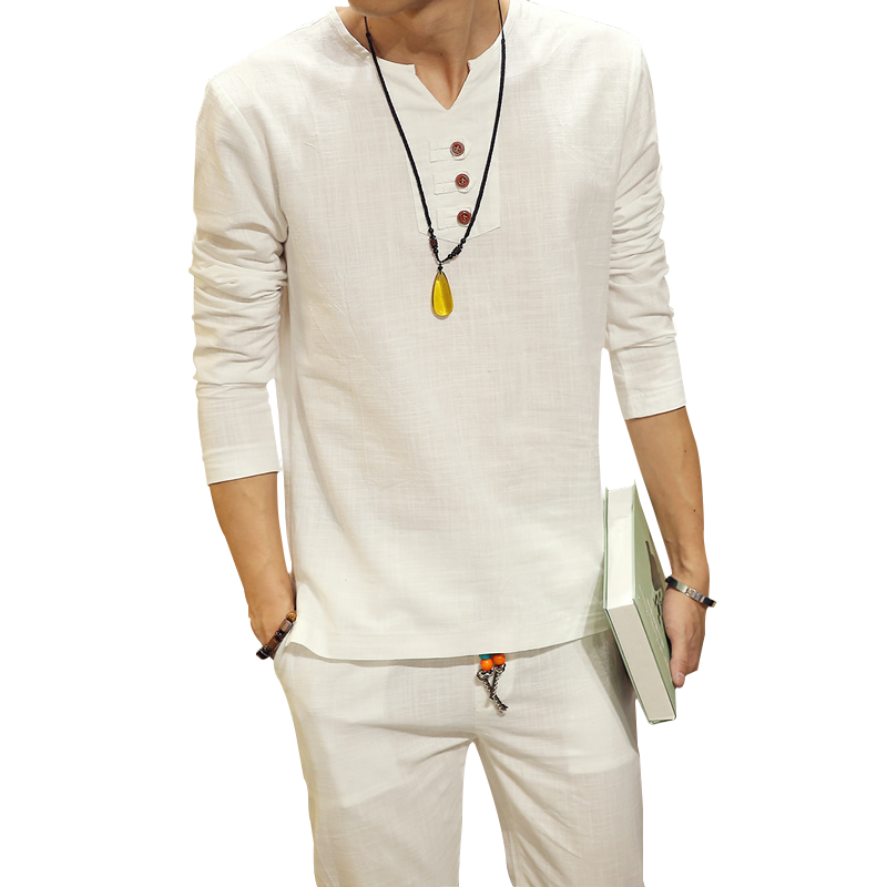 2017新款秋裝V領長袖T恤潮流大碼男帥氣時尚套裝大碼男