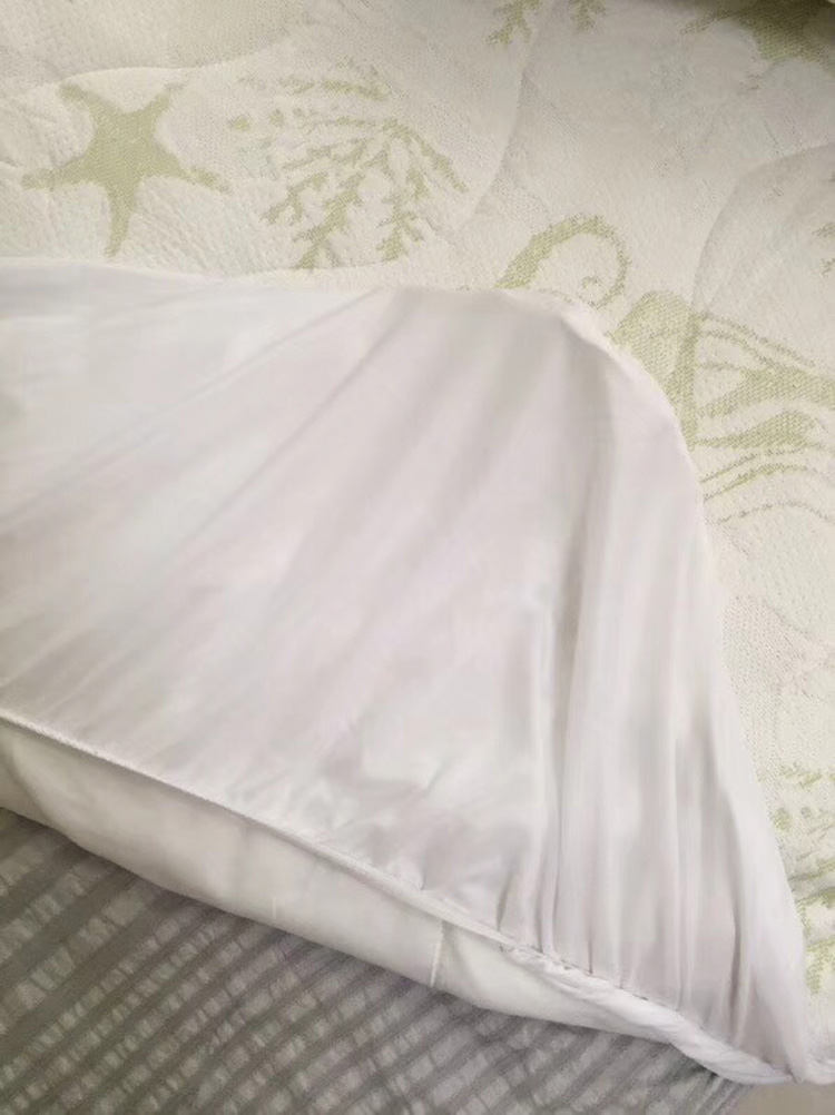質地:混紡防螨面料(工廠叫雪絨棉);內芯高強壓縮羽絲綿;