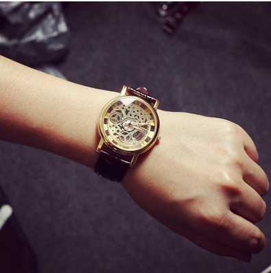 鏤空男表鋼帶金色s表縷空全自動機械表男防水學生皮帶手表男士潮
