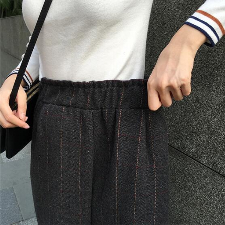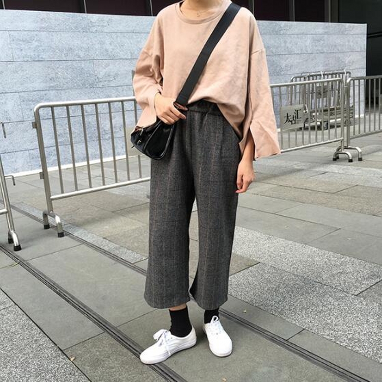 / 韓國chic冬款寬松格子闊腿褲百搭顯瘦呢子九分褲直筒休閑褲女