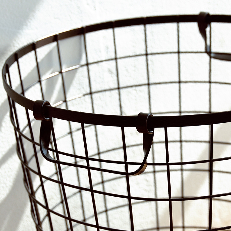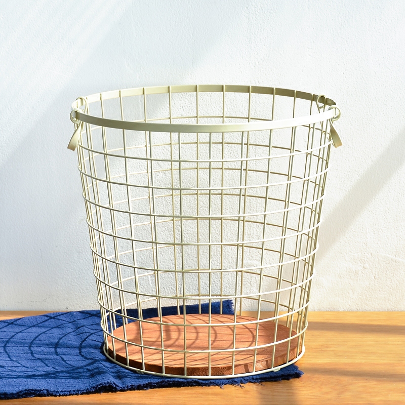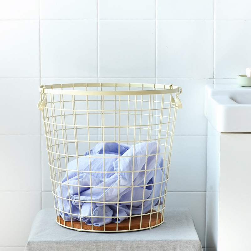 創意辦公雜物收納籃家用收納筐家居用品鐵藝木底臟衣籃