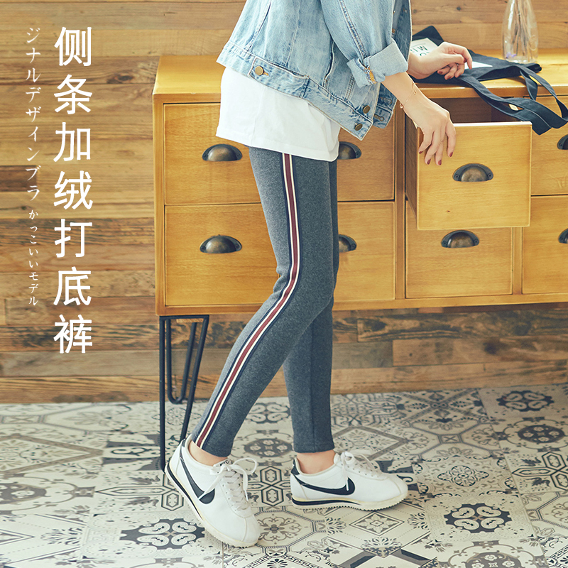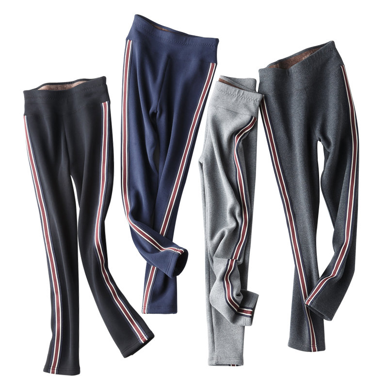 / 秋冬季保暖女褲韓版側邊條加絨打底褲女士加厚高腰顯瘦長
